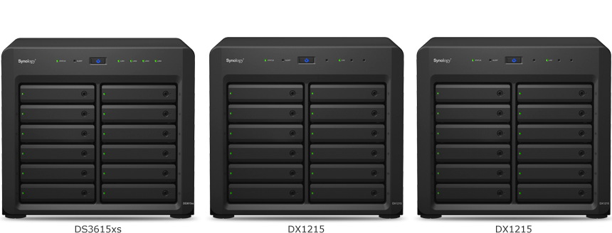 擁有 12 個硬盤托盤的 DS3615xs,通過連接至兩臺 DX1215 擴(kuò)充設(shè)備2,總?cè)萘靠蓴U(kuò)充至最多 216TB3,并能快速將單一存儲空間的容量實(shí)時擴(kuò)充至 108TB。當(dāng)存儲空間接近上限時,DS3615xs 可輕松擴(kuò)充至多達(dá) 36 顆一般硬盤或 SSD 硬盤,提供靈活擴(kuò)充的容量及均衡的效能,能符合不同應(yīng)用程序及程序的需求。