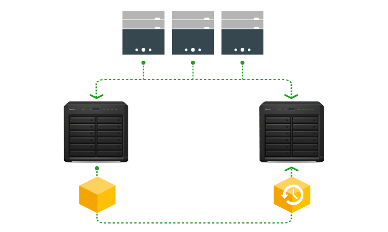 對于所有企業(yè)而言,提供不中斷的服務(wù)是非常重要的目標(biāo)。DS3615xs 提供 Synology High Availability (SHA) 技術(shù),其連接了主動與被動服務(wù)器,前者的所有數(shù)據(jù)皆鏡射至后者,當(dāng)主動服務(wù)器出現(xiàn)錯誤時,被動服務(wù)器馬上取而代之。共享文件夾同步可將數(shù)據(jù)實(shí)時復(fù)制至另一臺遠(yuǎn)程的 Synology NAS,在復(fù)原時間目標(biāo) (Recovery Time Objective, RTO) 內(nèi)回復(fù)企業(yè)因服務(wù)器故障而中斷的服務(wù)。此外,通過多網(wǎng)絡(luò)端口鏈接,DS3615xs 在單一網(wǎng)絡(luò)功能異常時,也能提供備援機(jī)制。